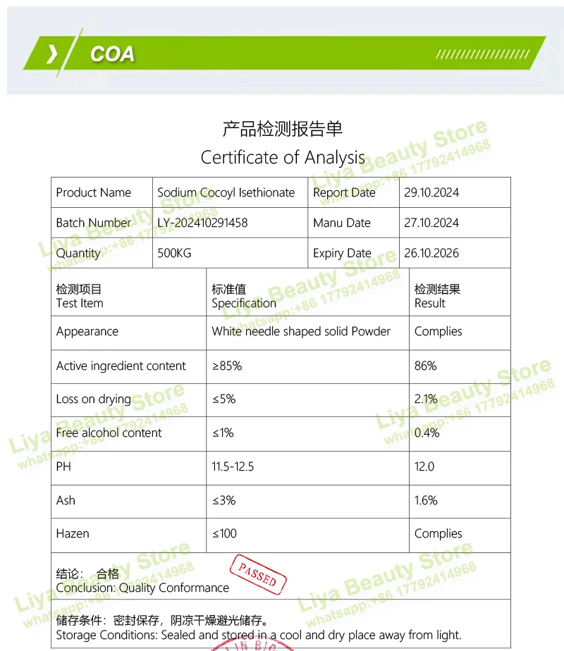 Skincare Foaming Agent SCI-85 Sodium Cocoyl Isethionate Surfactant For Shampoo & Gel Cosmetic Ingredients