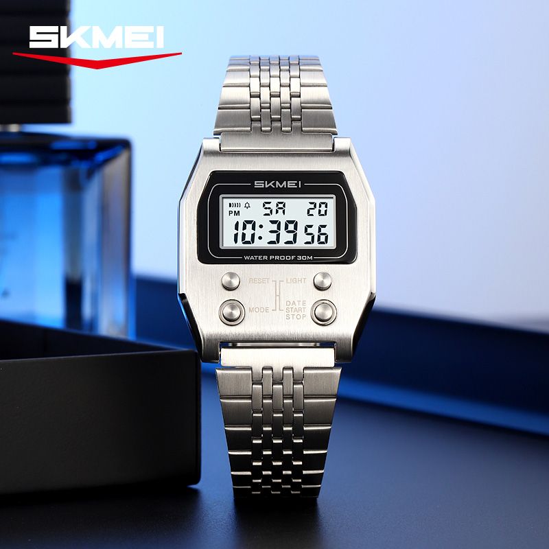 SKMEI 2460 Luxury Retro LED Electronic Waterproof Digital Mens Wristwatches Stainless Steel Sport Watch for Men Reloj Hombre