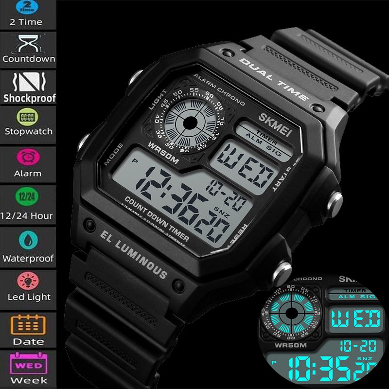 SKMEI Chronograph Countdown Digital Wristwatches 50M Waterproof Fashion Casual Sports Watches Men Clock Relogio Masculino