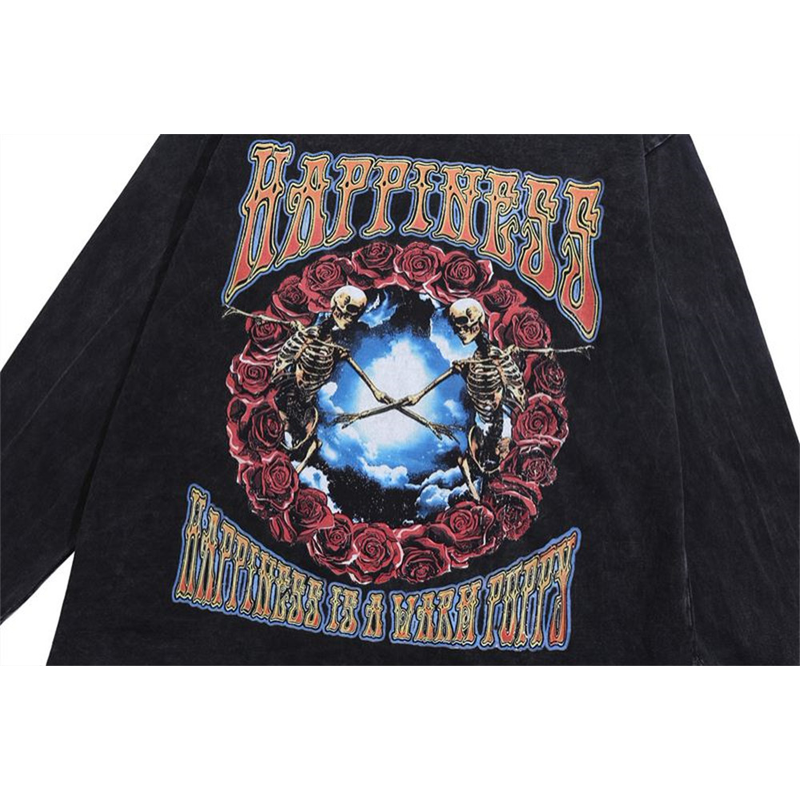 Skull Print Long-sleeved T-shirt For Men Black XXL