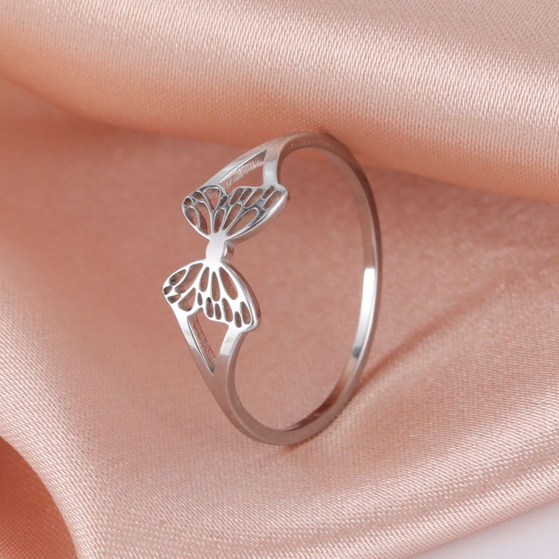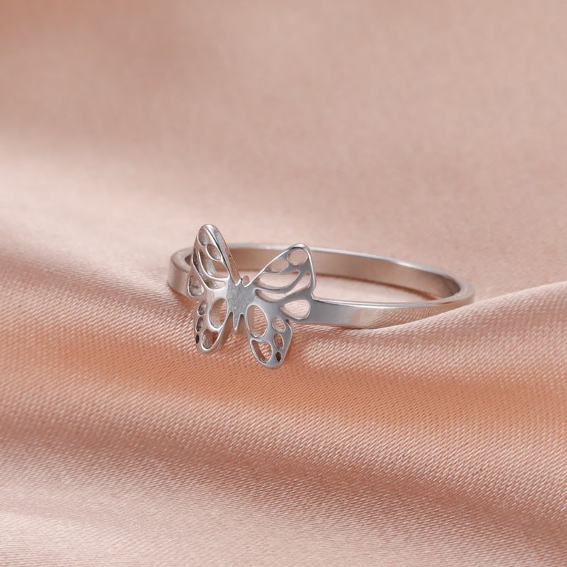 Skyrim Stainless Steel Women's Ring Simple Heart Butterfly Moon Phase Geometric Finger Rings Wedding Gift for Lover Wholesale