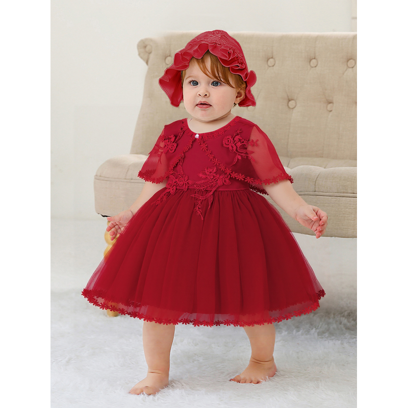 Sleeveless Hood Cloak Soft Satin Floral Embroidered Lace Wedding Party Princess Baby Dress Set