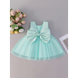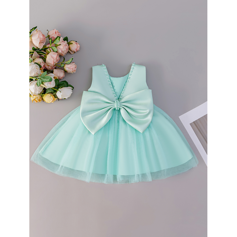 Sleeveless Satin Beaded Chiffon Dress With Large Bow Suitable For Baby Baptism Wedding Flower Girl Party Dress