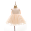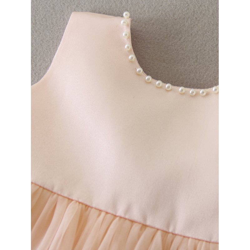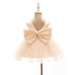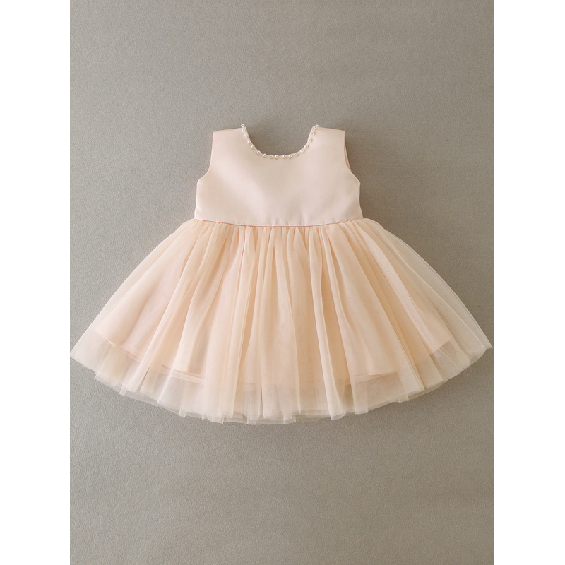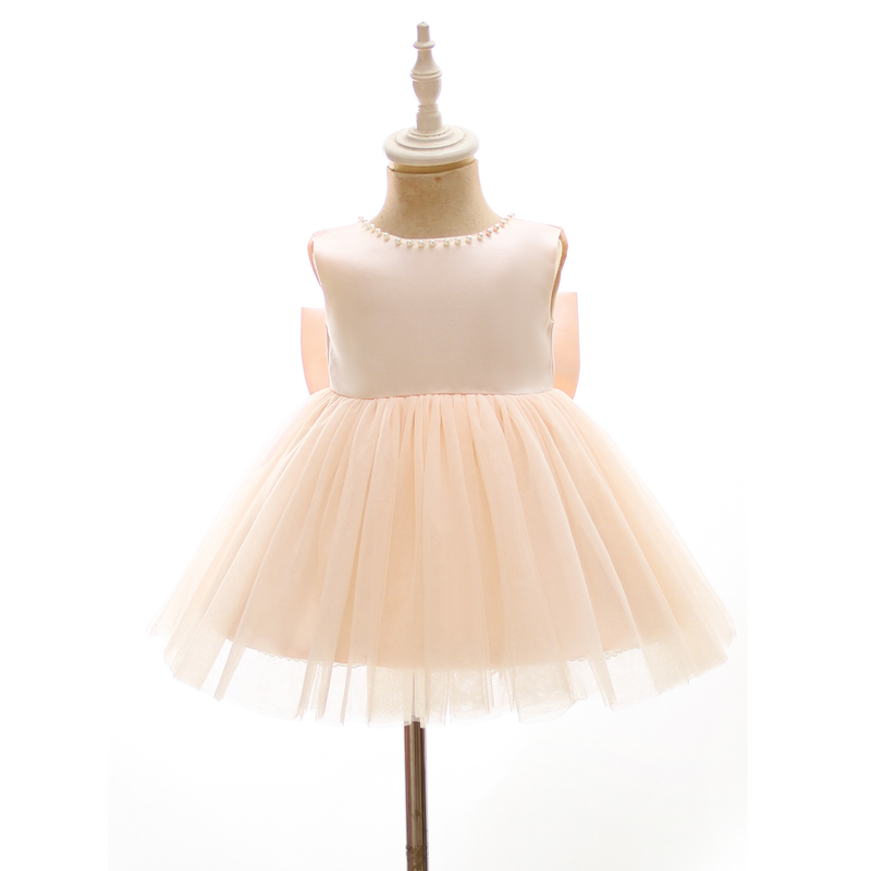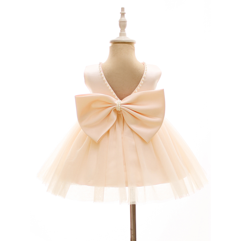 Sleeveless Satin Beaded Chiffon Dress With Large Bow Suitable For Baby Baptism Wedding Flower Girl Party Dress