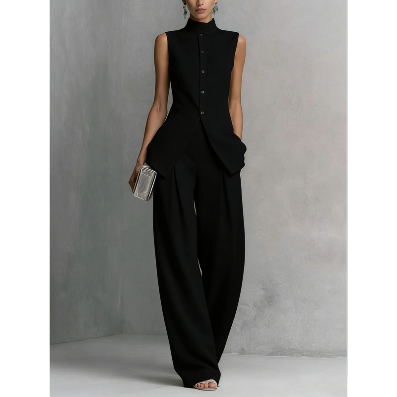 Sleeveless Top+Wide Leg Pants Summer Casual Two-piece Set Elegant and Loose Office Set High Street Pocket Women's Set