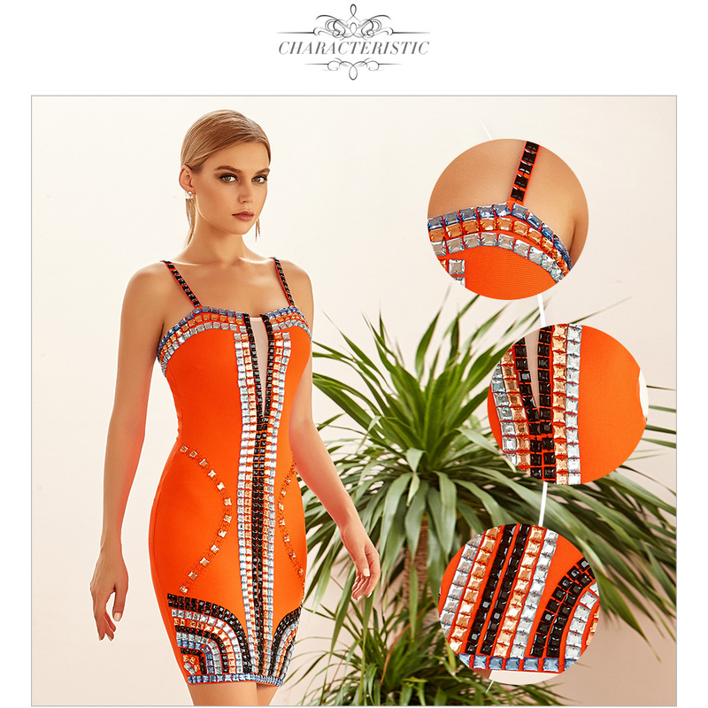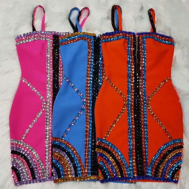 Name: Sleeveless women's luxury diamond bandage dress