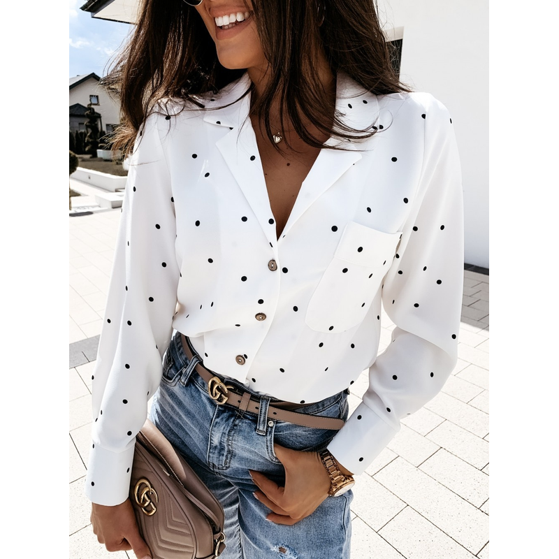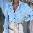 Slim Button Polka Dot Long Sleeve Pocket Shirt Blue 2XL