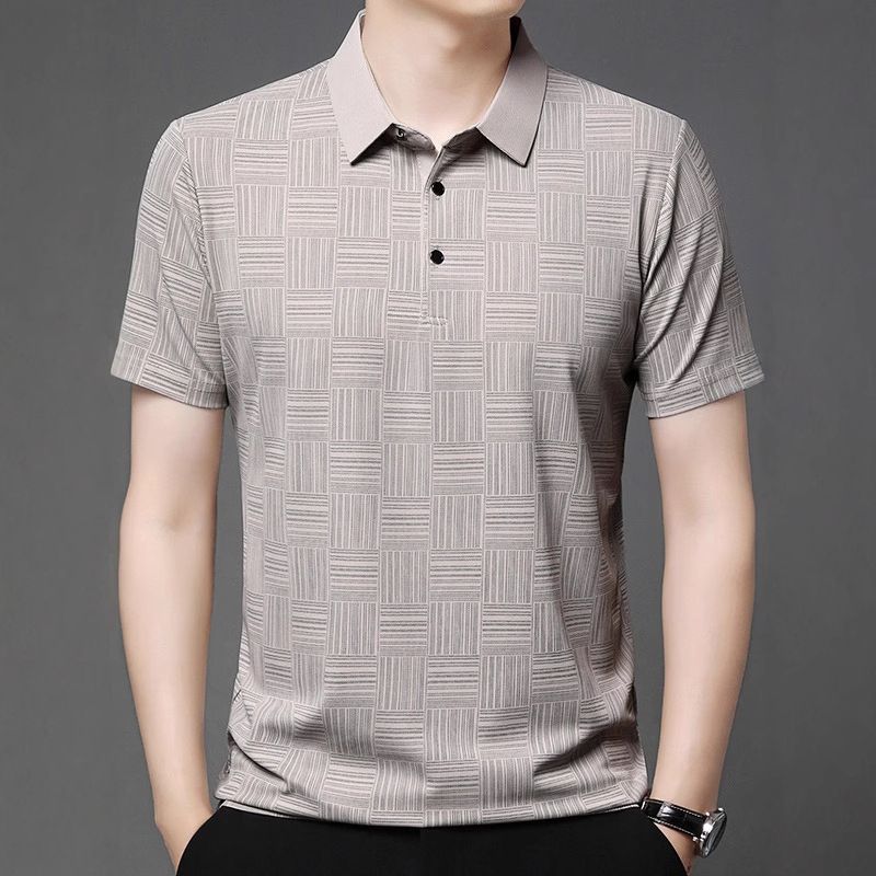 Slim Fit Breathable New Men's Lapel T-shirt Brown M