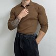 Slim-fit Long-sleeved Polo Shirt Retro Loose Half Zipper Sweater Brown XL