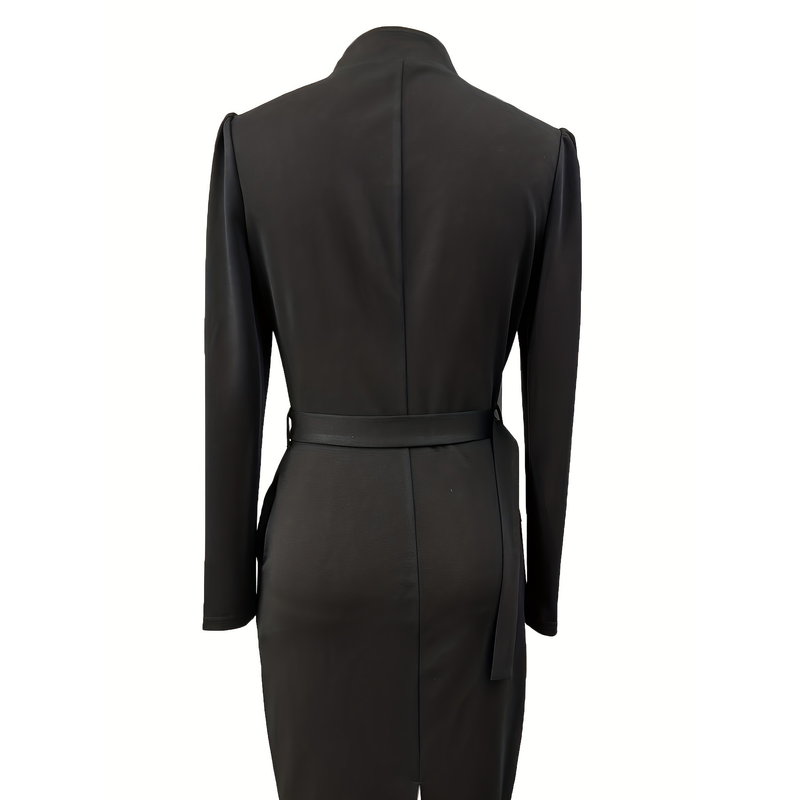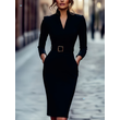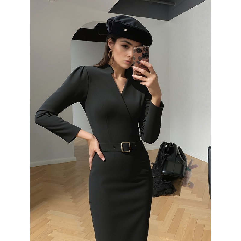 Slim-fitting Casual Suit Dress V-neck Long-sleeved Dresses Commuting Office Clothing For Women Apricot S