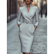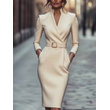 Slim-fitting Casual Suit Dress V-neck Long-sleeved Dresses Commuting Office Clothing For Women Red L