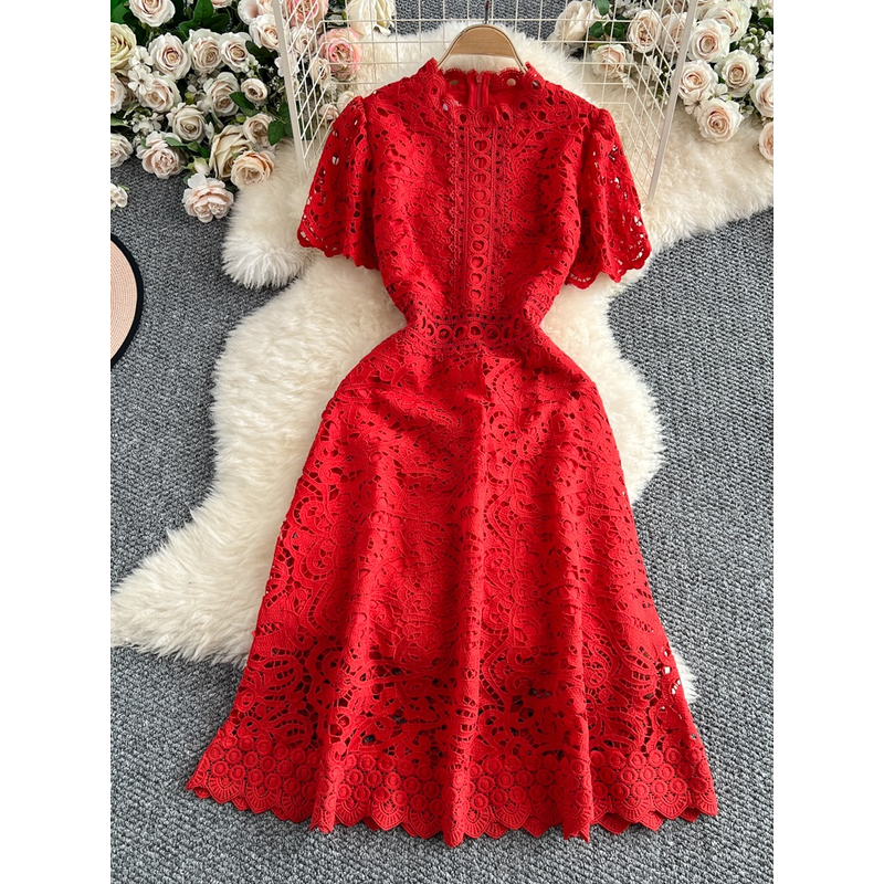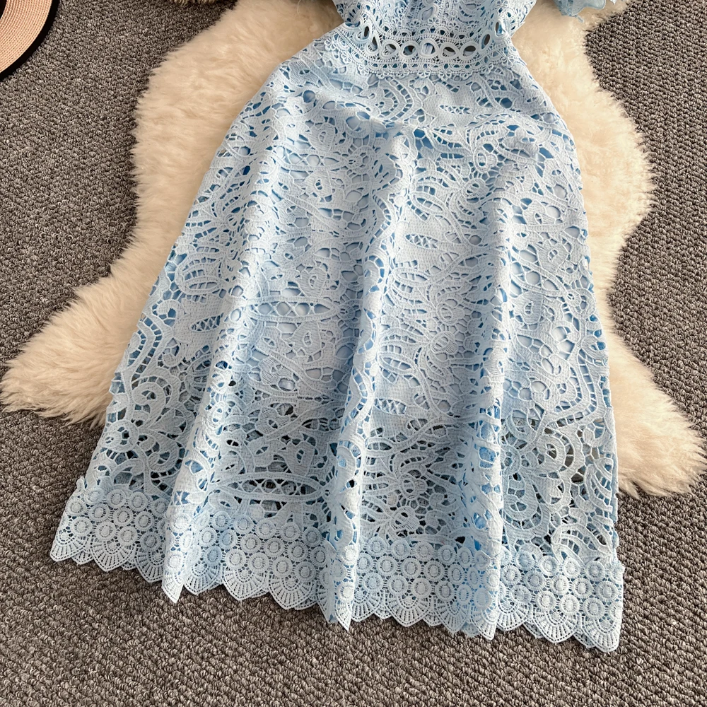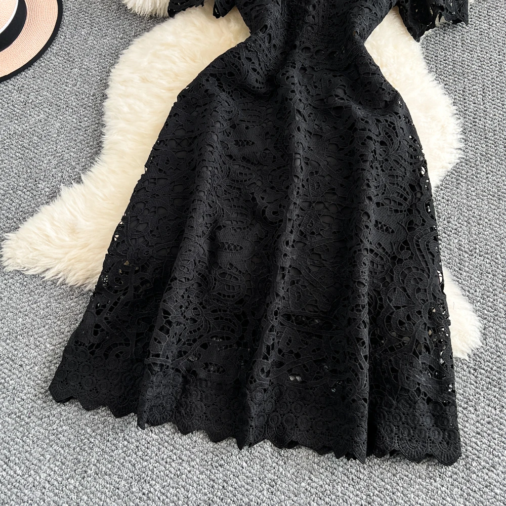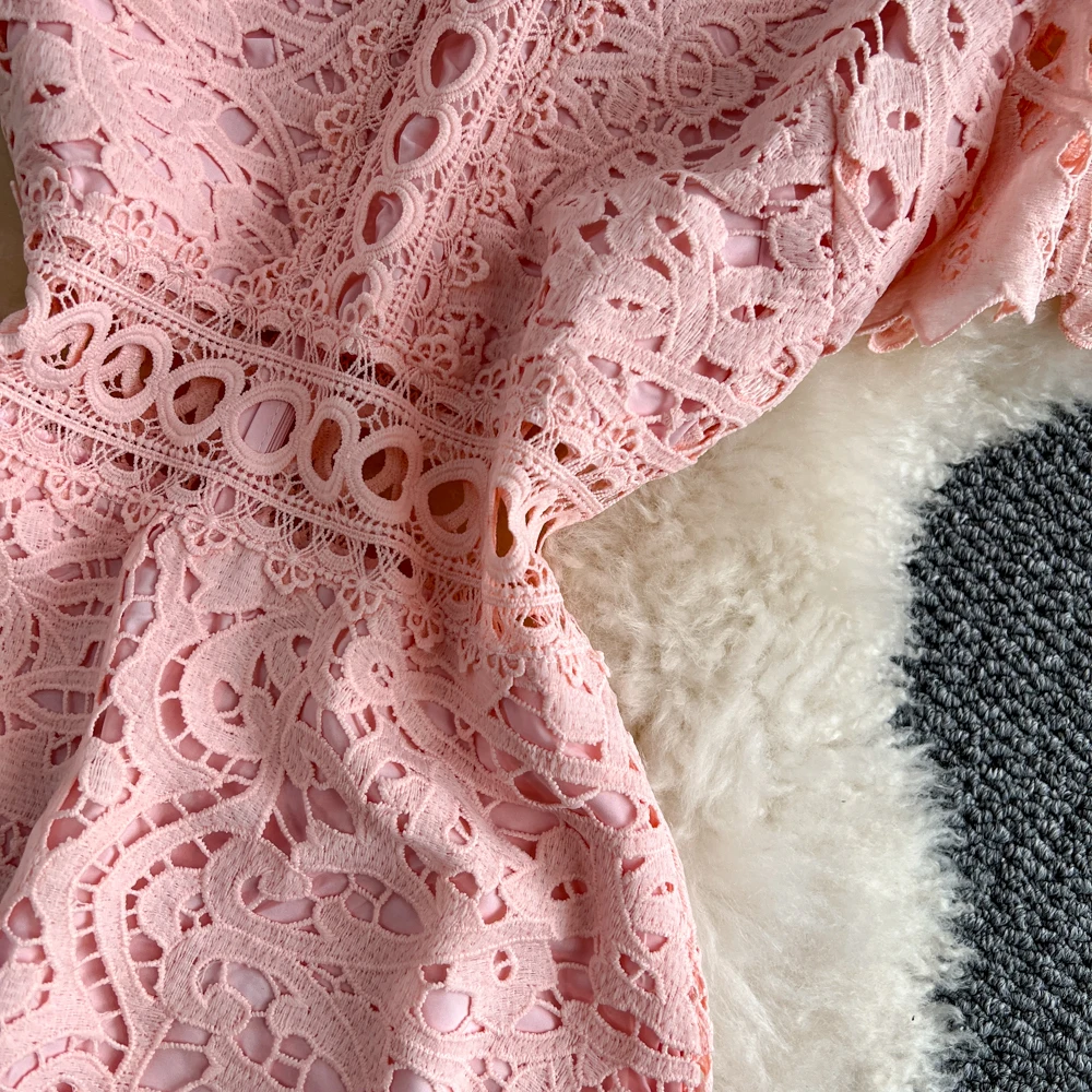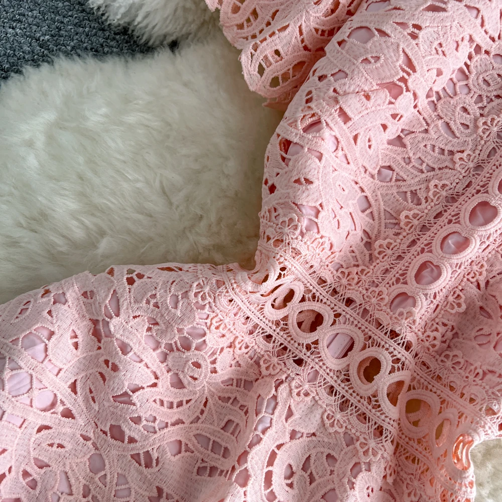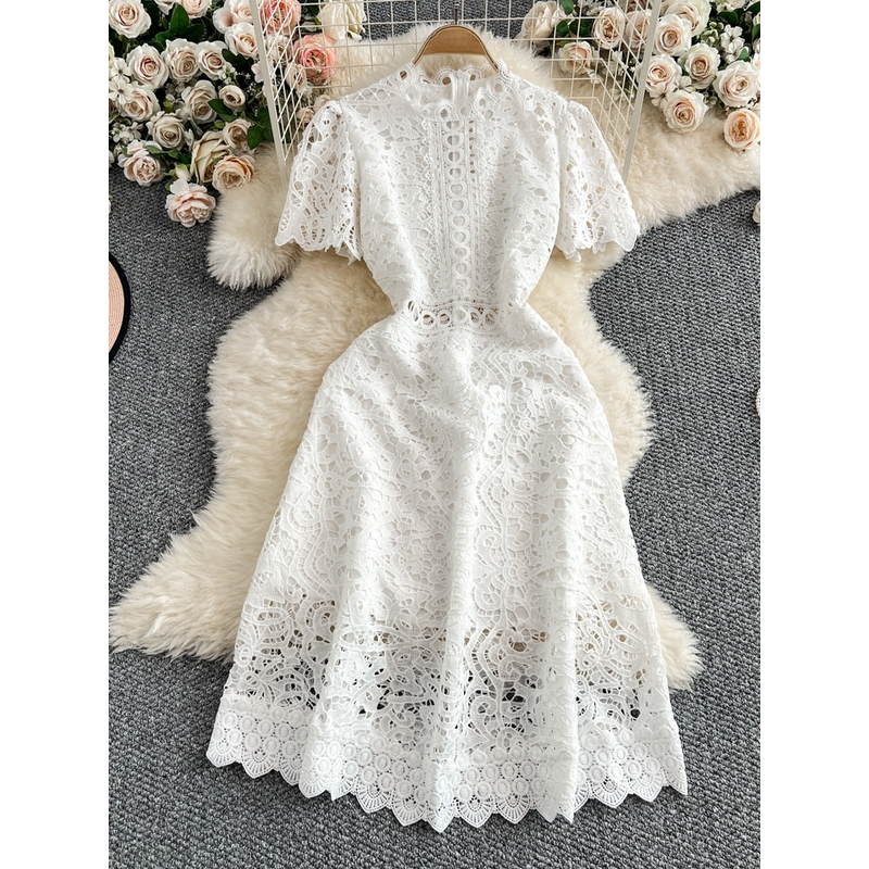 Slimming ort Sve Hollow out Waist-Cinched Hook-Design Dres Women's Faionable New Arrival Spring Summer Korean Sle