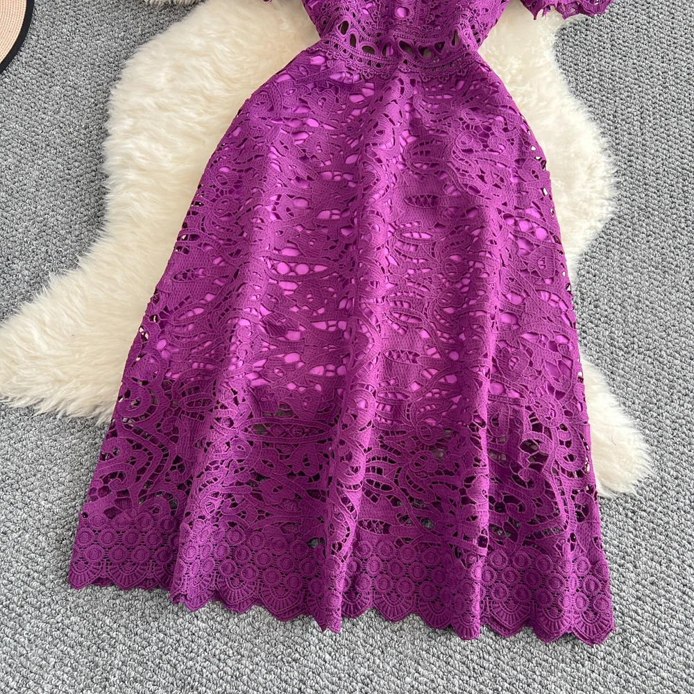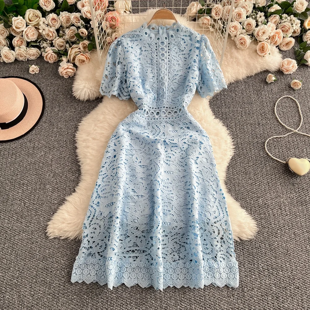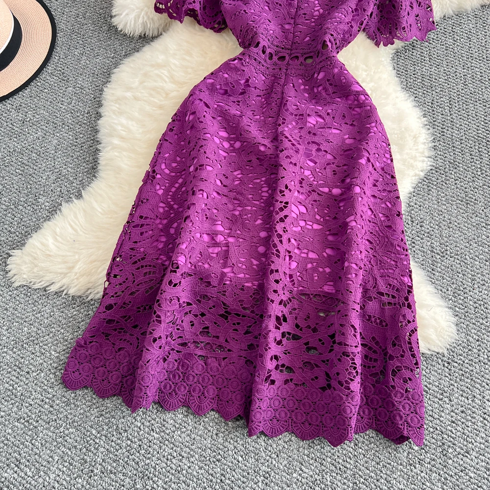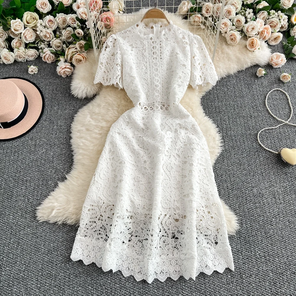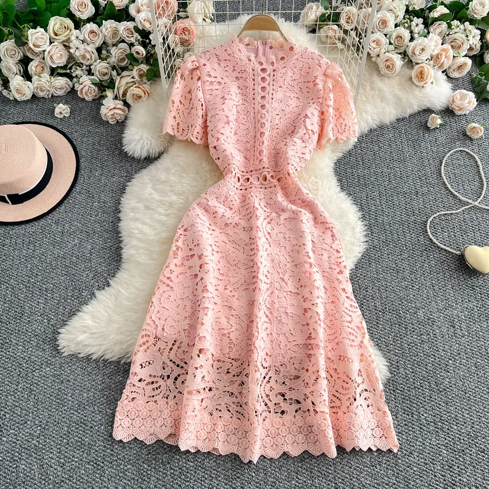 Slimming ort Sve Hollow out Waist-Cinched Hook-Design Dres Women's Faionable New Arrival Spring Summer Korean Sle
