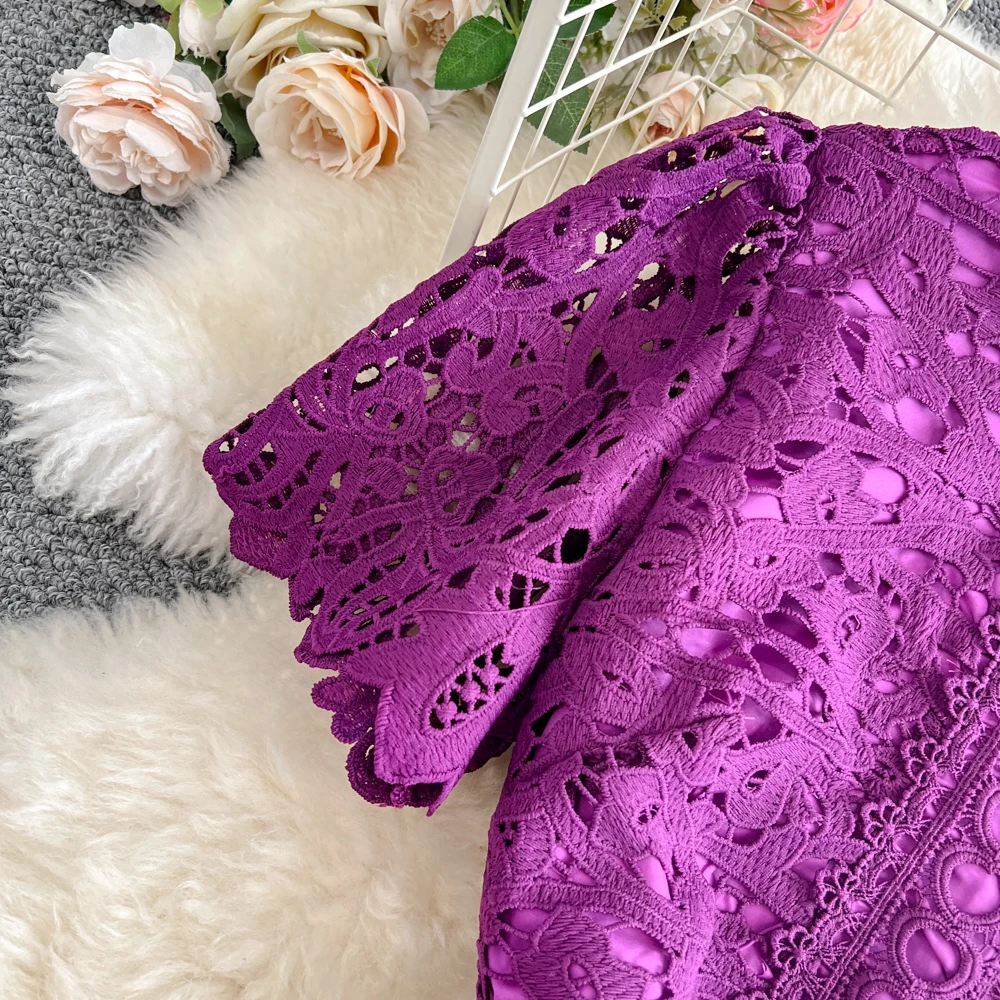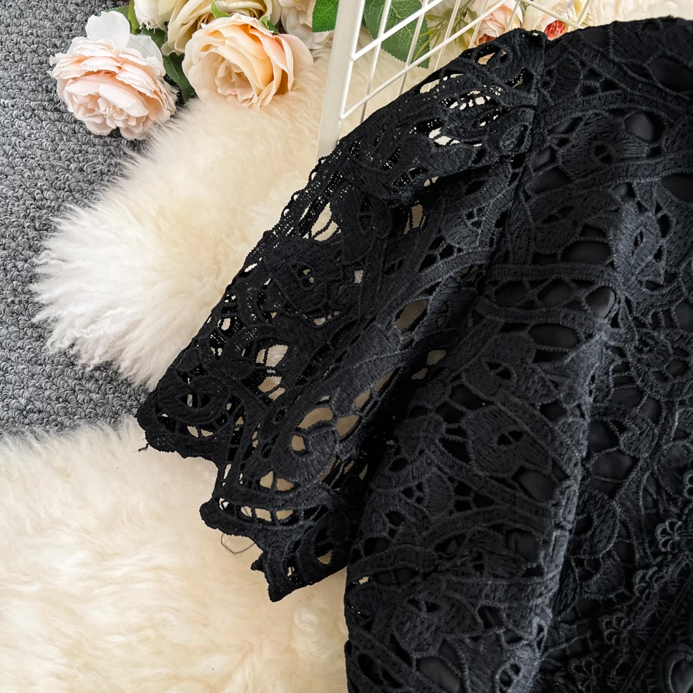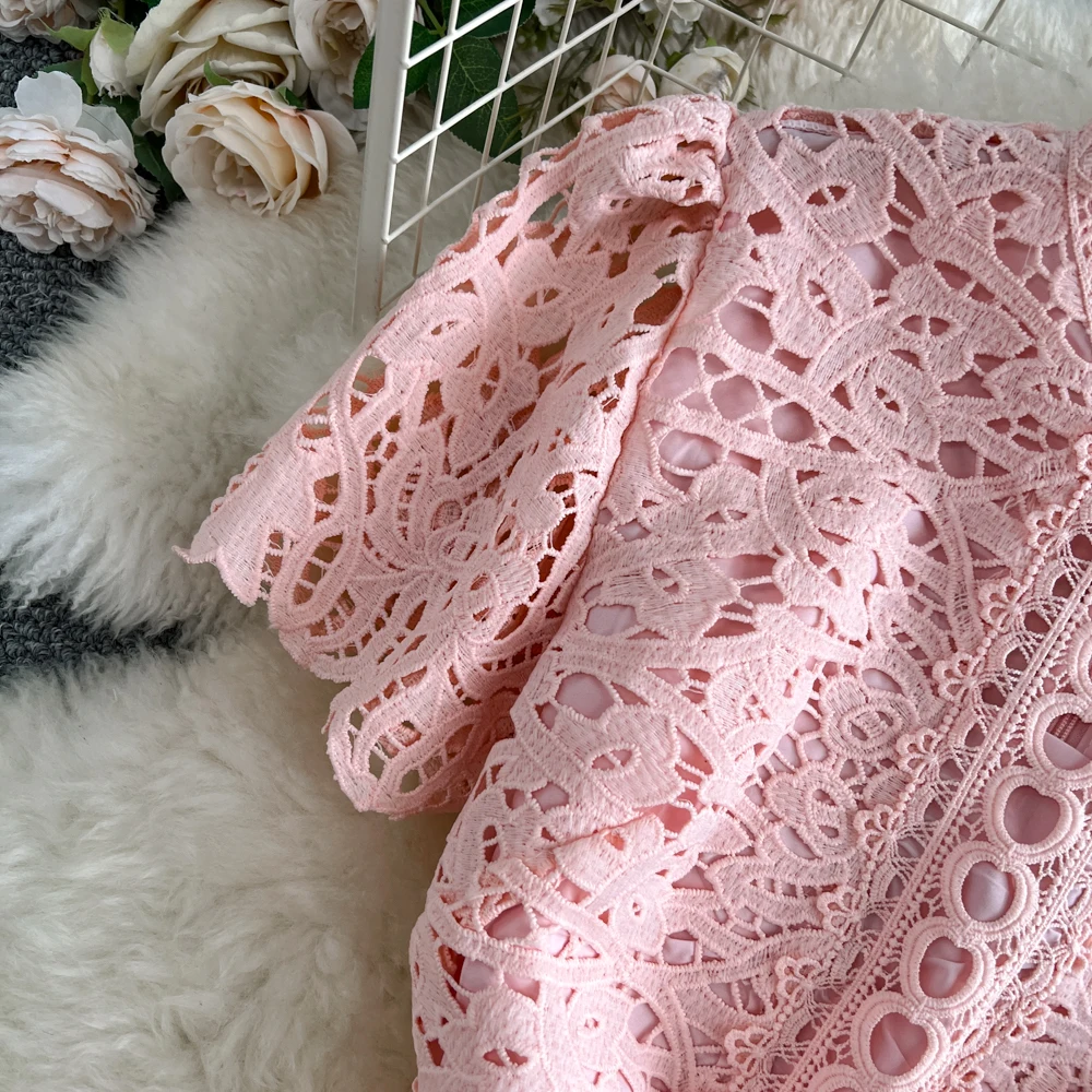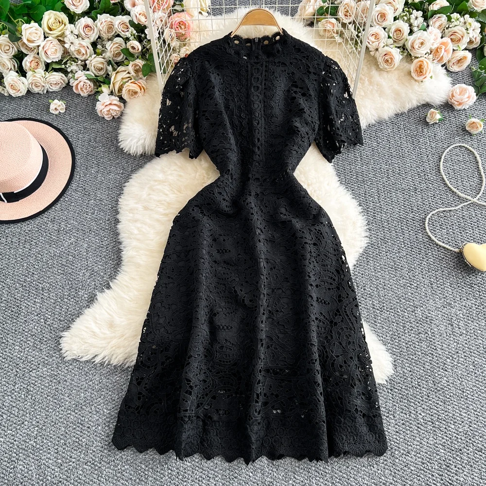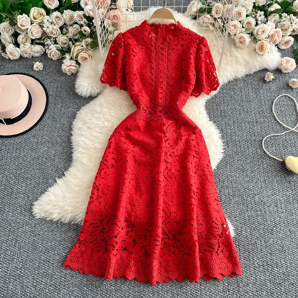 Slimming ort Sve Hollow out Waist-Cinched Hook-Design Dres Women's Faionable New Arrival Spring Summer Korean Sle