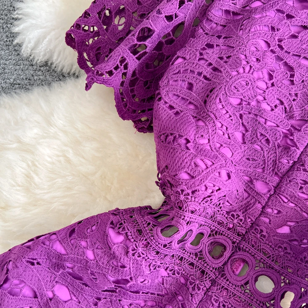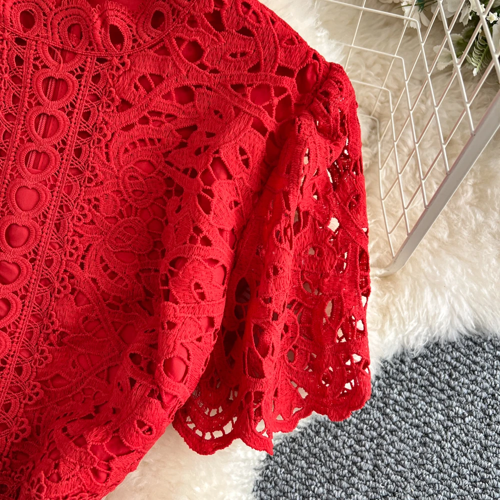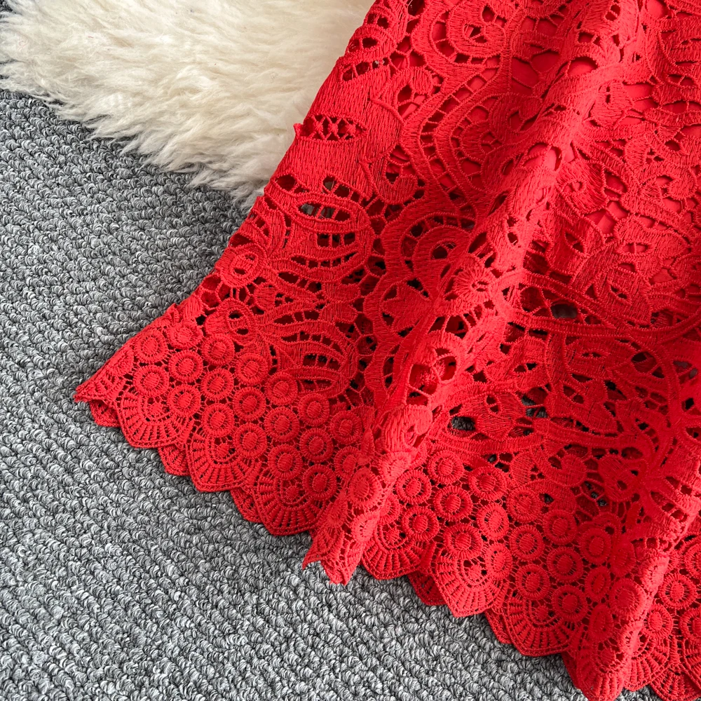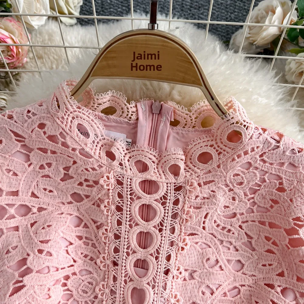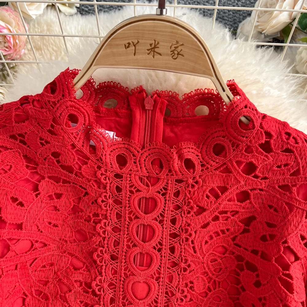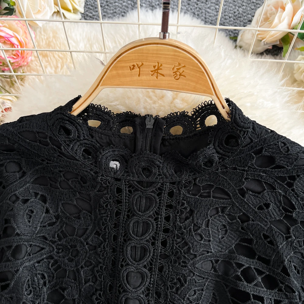 Slimming ort Sve Hollow out Waist-Cinched Hook-Design Dres Women's Faionable New Arrival Spring Summer Korean Sle