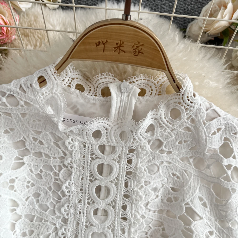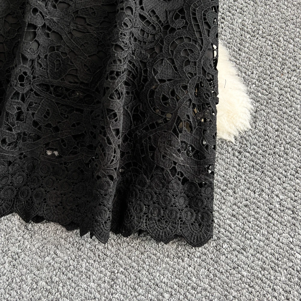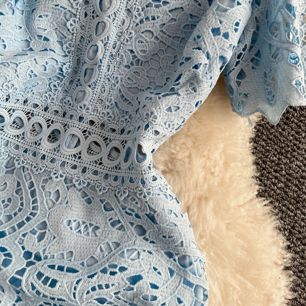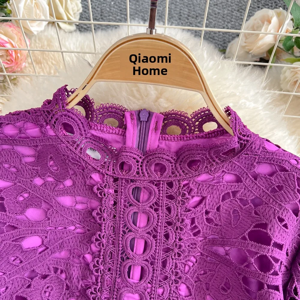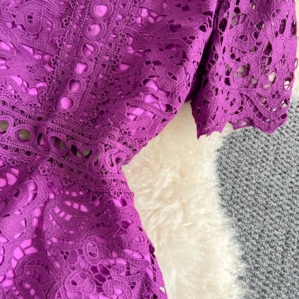 Slimming ort Sve Hollow out Waist-Cinched Hook-Design Dres Women's Faionable New Arrival Spring Summer Korean Sle