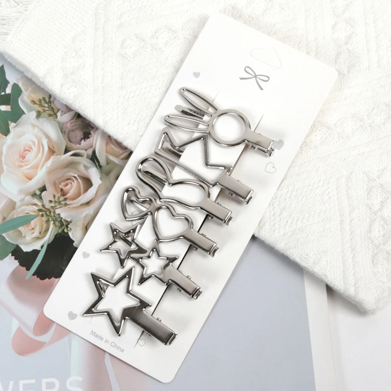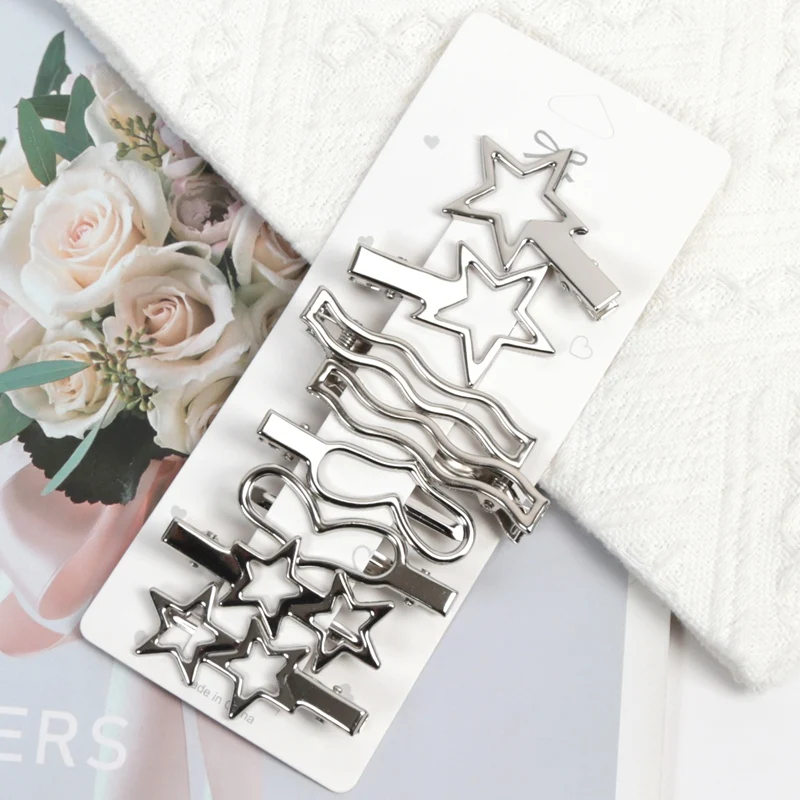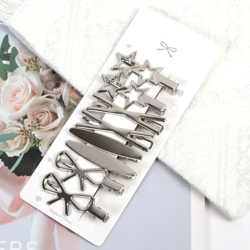 Sliver Color Metal Hair Clips Women Y2K Duckbill Hairpin Personality Headwear Barrettes Hairclip Styling Accessories for Girls