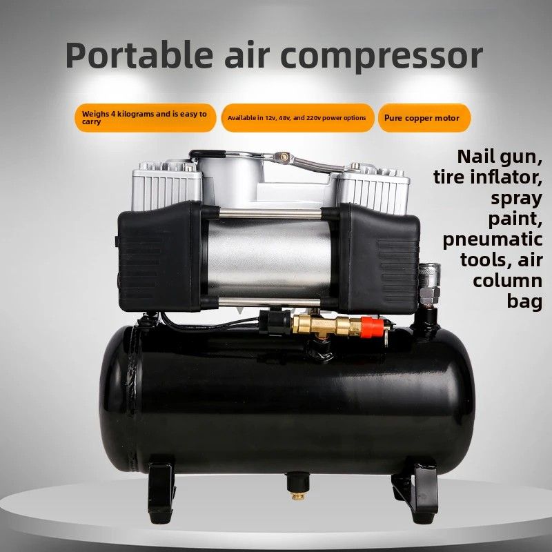Small air compressor portable oil-free low noise air pump mini 220v car 12v car paint air storage tank