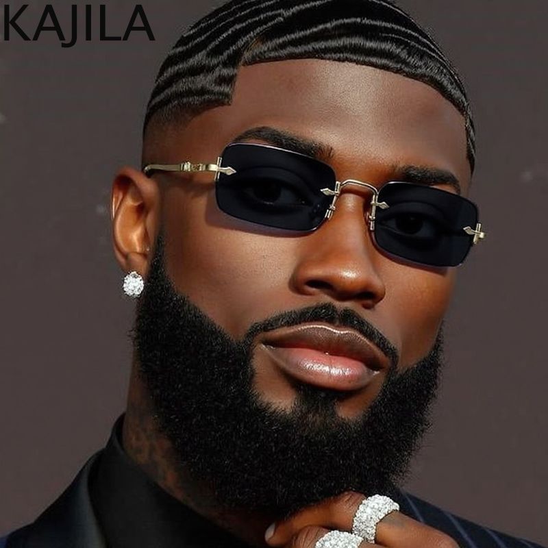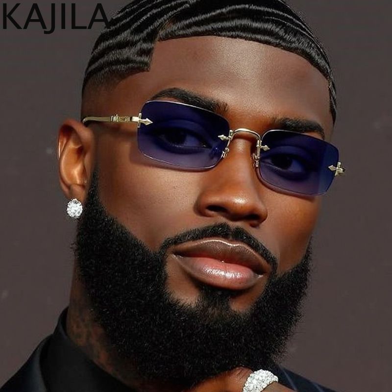 Small Frame Rectangle Rimless Punk Sunglasses Men 2025 Luxury Brand Vintage Metal Sun Glasses For Male Classic Shades UV400