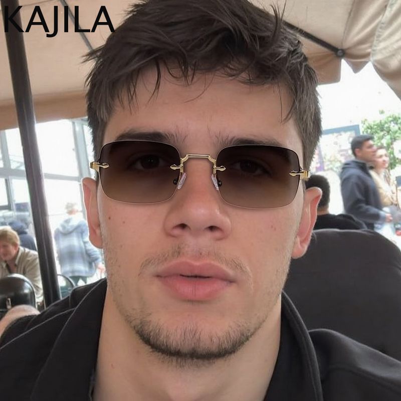 Embrace the punk aesthetic with these vintage rimless rectangle sunglasses, a trendy choice for the fashion-forward.