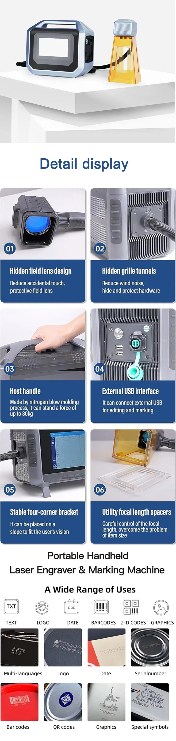 Small Handheld Expire Date logo Coding 20w 30w Portable Fiber Laser Marking Machine for Metal Plastic Glass Cable Wire Tube