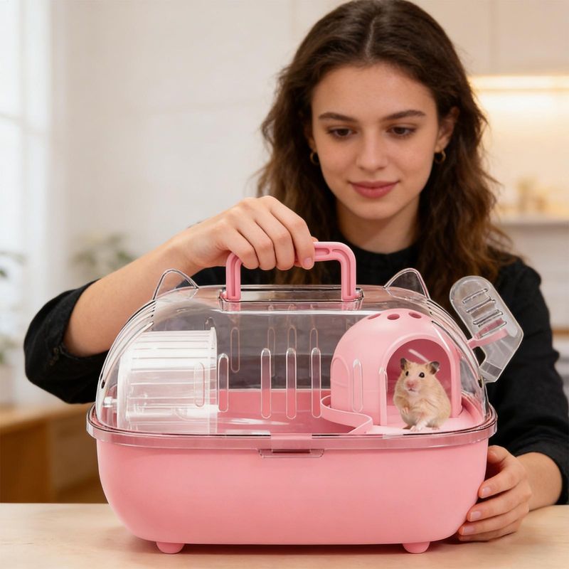 5.Versatile Pet Carrier: The hamster travel carrier is designed to accommodate not only hamsters but also other small pet breeds, ensuring safety and comfort during trips; its adaptable design makes it ideal for various travel scenarios, offering peace of mind while transporting your beloved pets