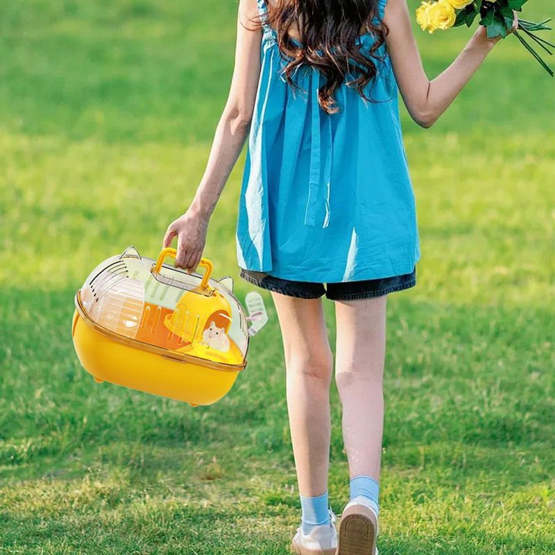 Small Pet Carrier Transparent Cover Travel Cage for Hamsters Rabbits Rodents Lizards Transport Short Trip Car Outing Picnic