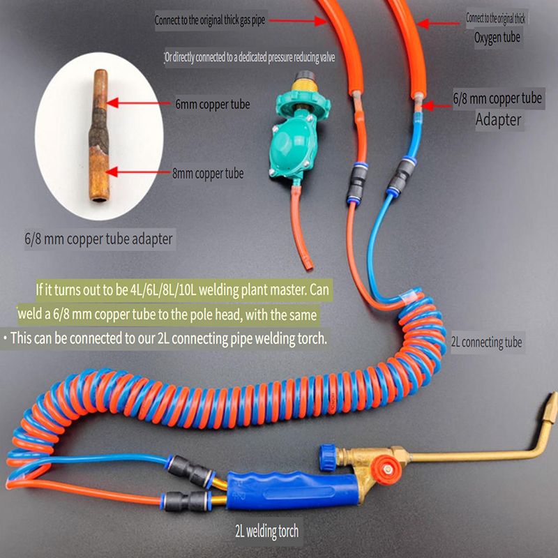 Small welding torch connected to spring telescopic tube 2L handheld welding gun PU double row oxygen acetylene tube