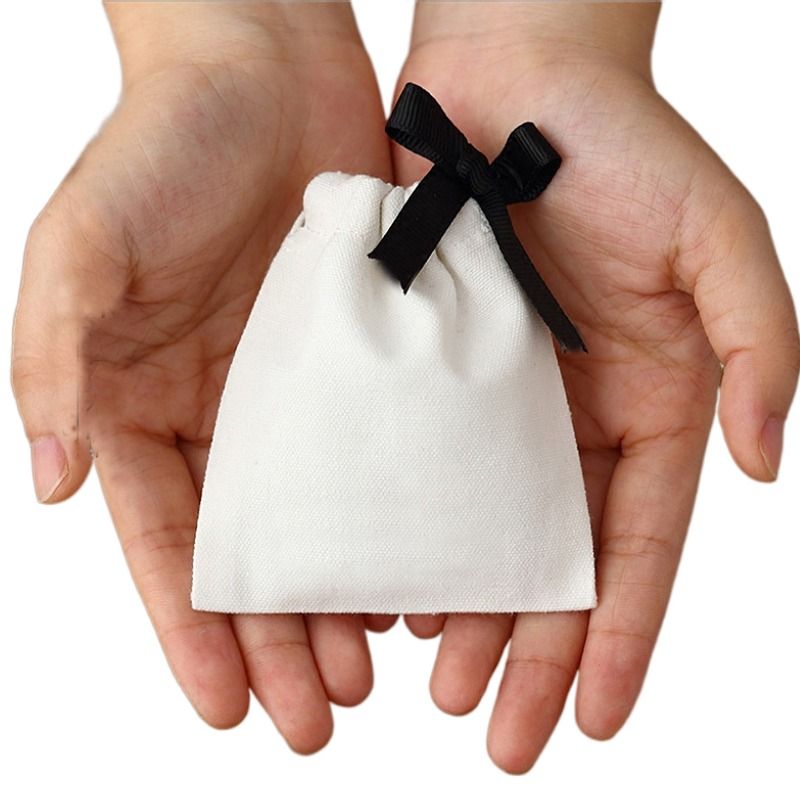 Small White Cotton Gift Bags 5x7cm 8x10cm 9x12cm Party Candy Favor Sack Custom Muslin Drawstring Bag Jewelry Logo Pouch