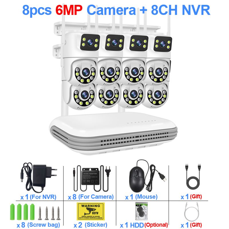 Smar WiFi Security Camera System 6MP Dual Lens Wireless IP Camera Kit With Two-Way Audio 8CH NVR