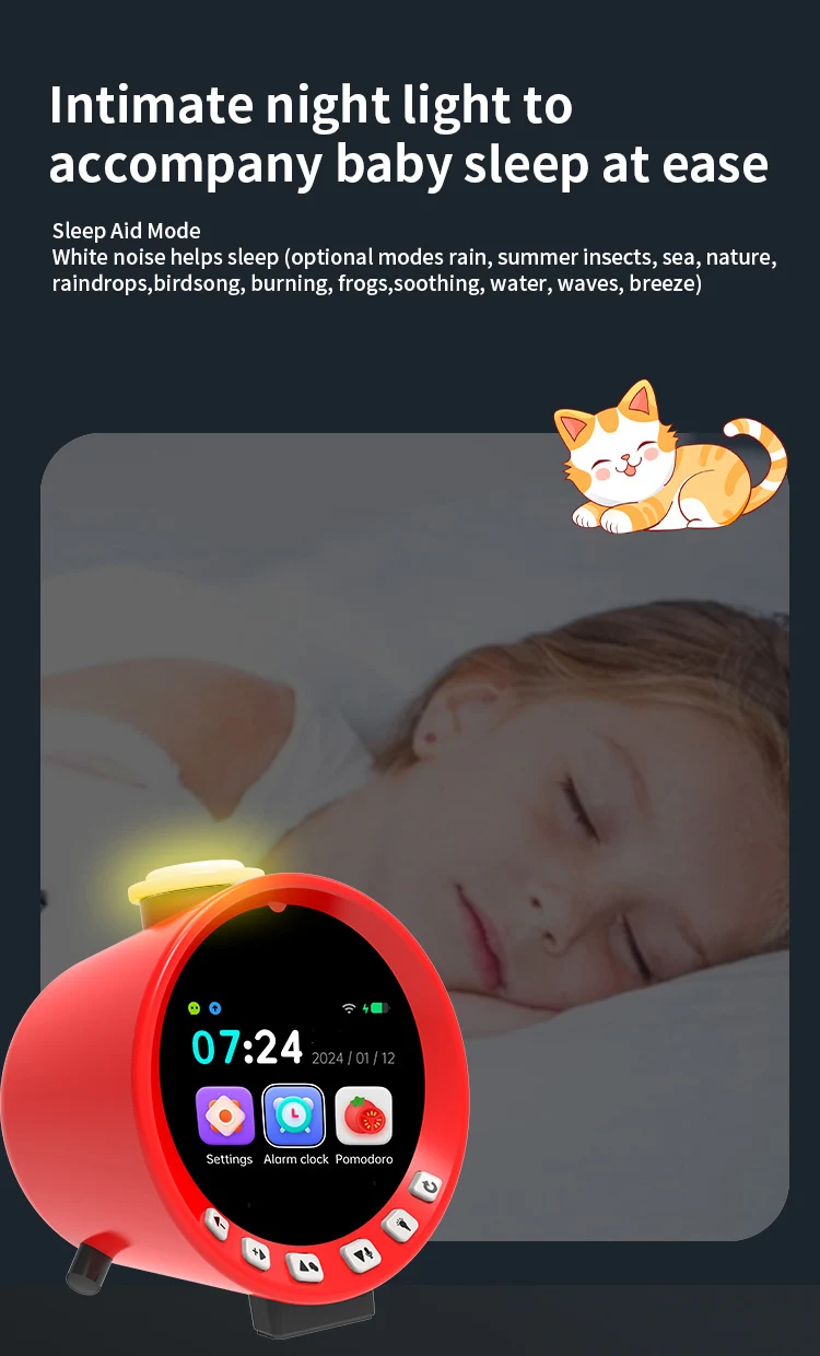 6 Compact & Versatile Design Combines a sleep aid, alarm clock, educational tool, and noise machine in one space-saving device.