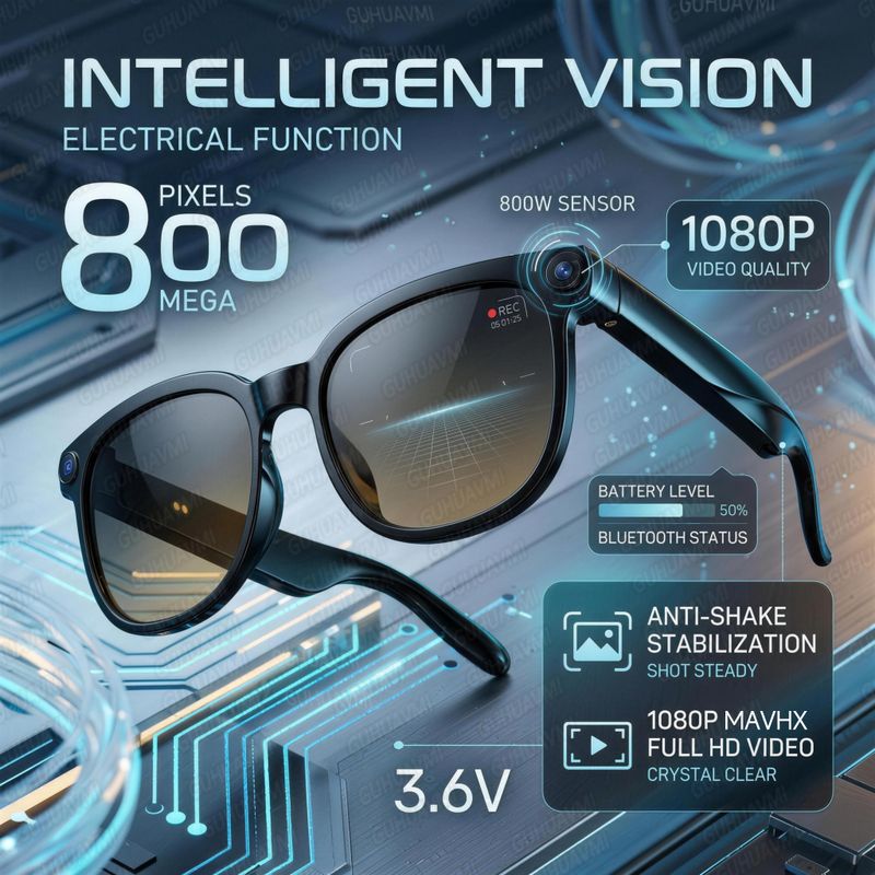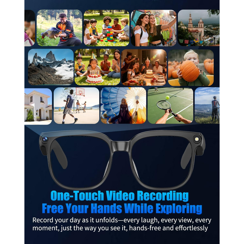 Smart AI Glasses with 1080P HD Camera Bluetooth 5.4 Wireless Headphones AI Voice Assistant Open Ear Audio Sports Wear Men Women