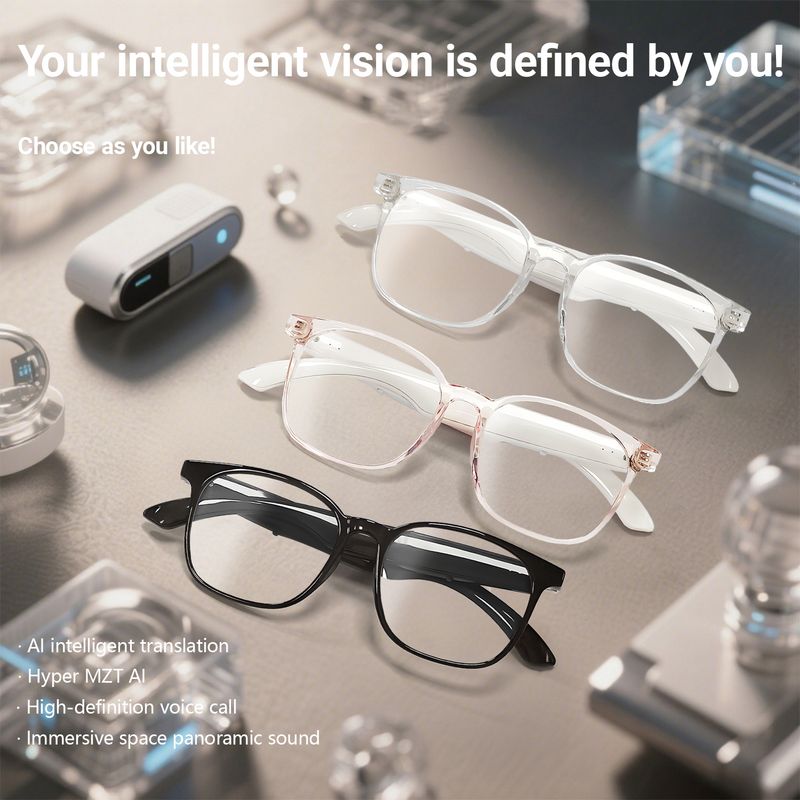 Smart AI translation wireless glasses, casual touch operation, built-in speaker, stylish for outdoor cycling and work