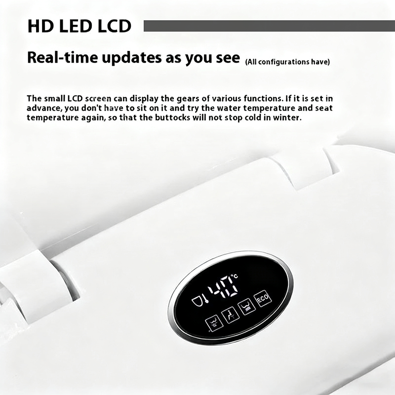 UV Sterilization | Side Button Control | Fully Automatic Wash | Rear Wash | Feminine Wash | Child Wash | Moving Wash | Relaxing Wash | Heated Seat | Warm Air Drying | Self-Cleaning Nozzle | Night Light | Energy-Saving Mode | Soft-Close Lid | Adjustable Water Temperature | Adjustable Nozzle Position | Adjustable Air Temperature | Adjustable Water Pressure | Adjustable Seat Temperature