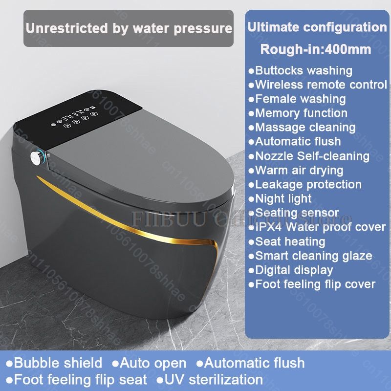 Smart Bidet Toilet with Automatic Flushing Massage Cleaning Heated Seat Warm Air Dryer Night Light Intelligent One Piece Toilet