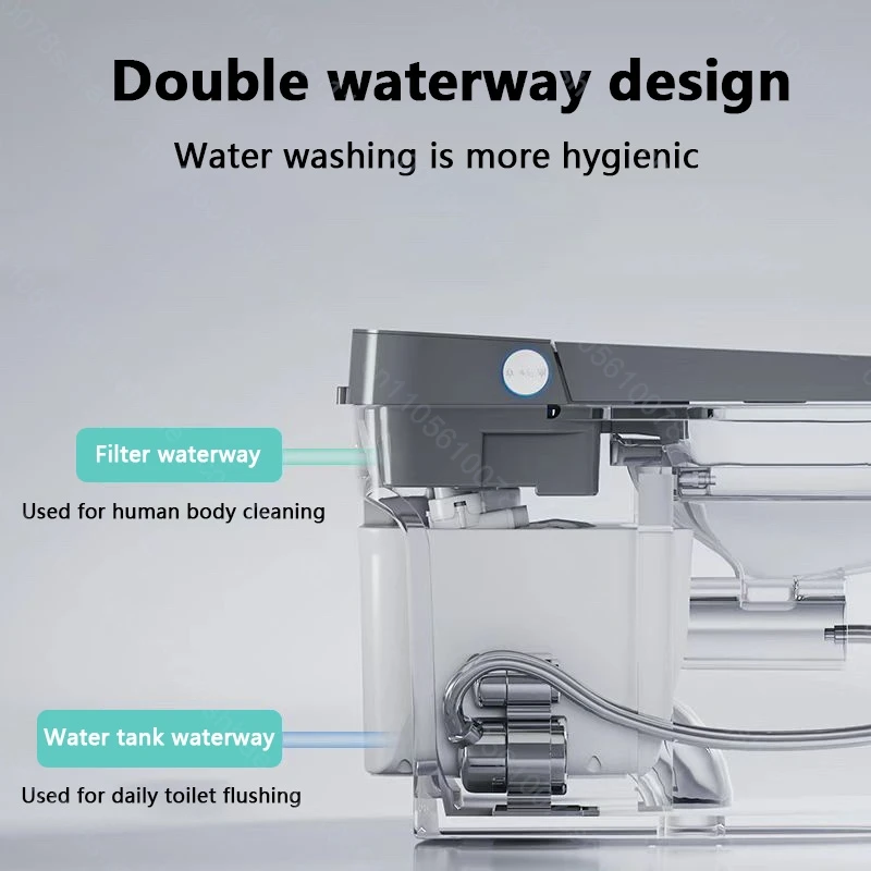This wall-mounted smart toilet is compatible with four installation rough-in distances: 300mm, 350mm, and 400mm.