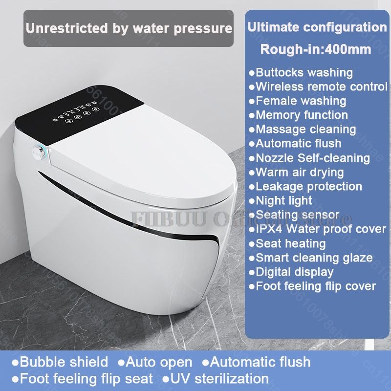 No Water Pressure Limitation |  Foam Shield | Automatic Lid Opening | Automatic Flushing | Foot Sensor Lid Control | Posterior Wash | RF Remote Control | Feminine Wash | Memory Function | Moving Wash | Pulse Mode | Massage Cleaning | Self-Cleaning Nozzle | Power Required | Warm Air Drying | Leakage Protection | LED Night Light | Manual Flush Button | Seat Sensor | IPX4 Waterproof Protection | Heated Seat with Adjustable Temperature | Nano Glazed Surface | Display Screen | Adjustable Nozzle Position | Foot Sensor Lid and Seat Control | Body Motion Lid and Seat Control
