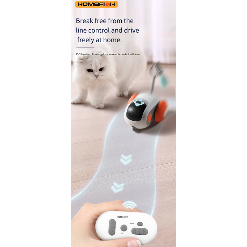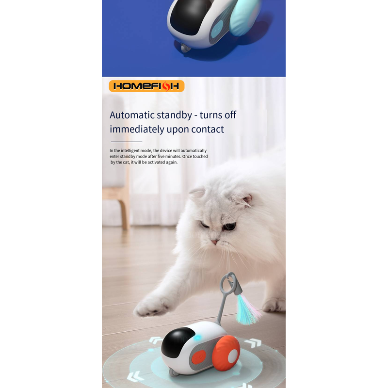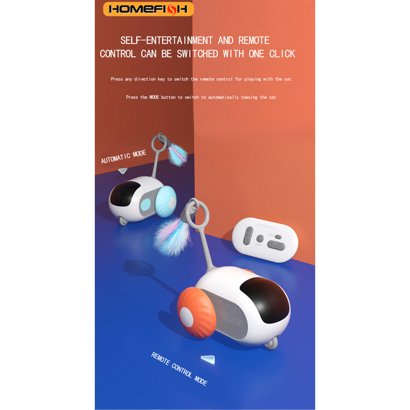 【Dual Mode】①Smart Mode: Flip the switch and the cat and automatic cat toy starts running free, triggering your cat's instinct to chase and pounce on moving prey. ②Remote control mode: Put the fun in your hands; the included four directions remote control allows you to move the interactive pet toys back and forth with just the press of a button, increasing the fun of interacting with your cat.