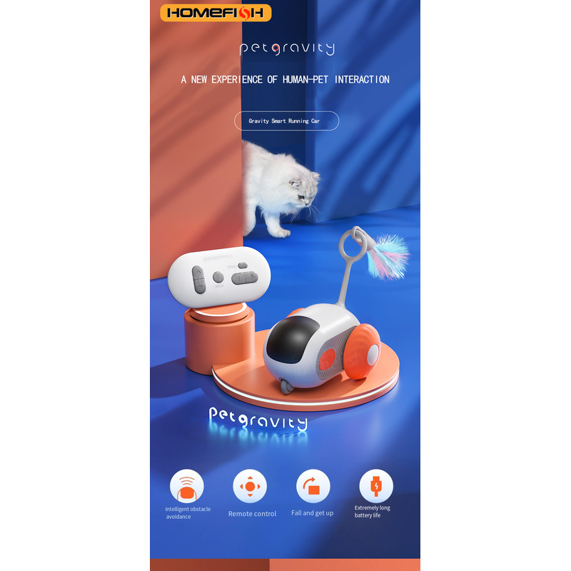 【Cat Love Set】 The fast-moving car design is inspired by the hunting instinct of cats. The long blue tail design is inspired by the color blue in the cat world. The beautiful and light tail is installed on the remote control cat toy car. When it moves like a mouse, it attracts the cat's attention even more.