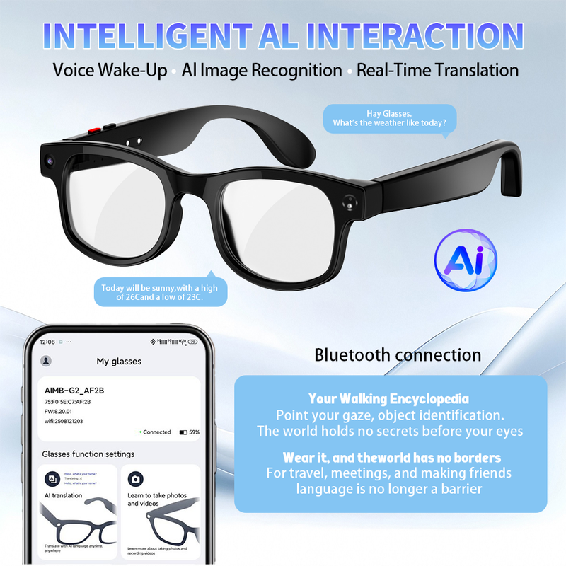 Smart Glasses 8 Million Pixels For Photo And Video Recording Ai Intelligent Translation Photochromic Lenses Bluetooth Connection
