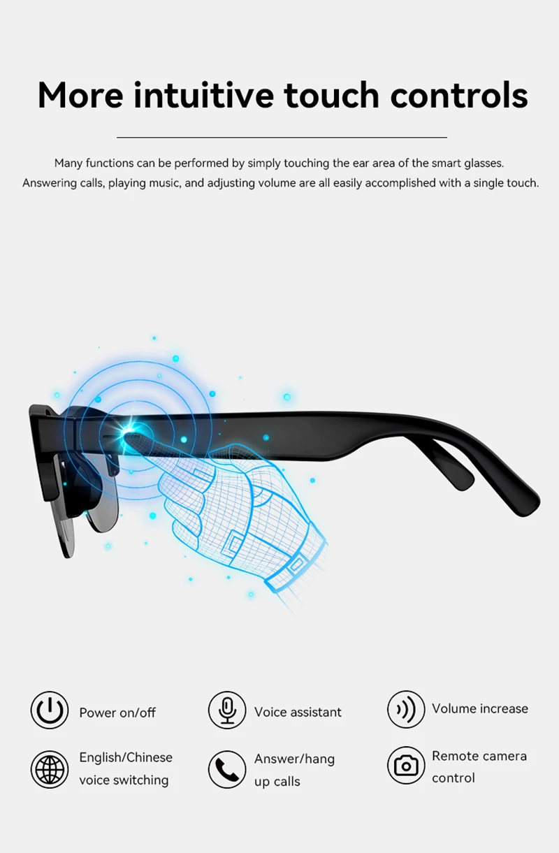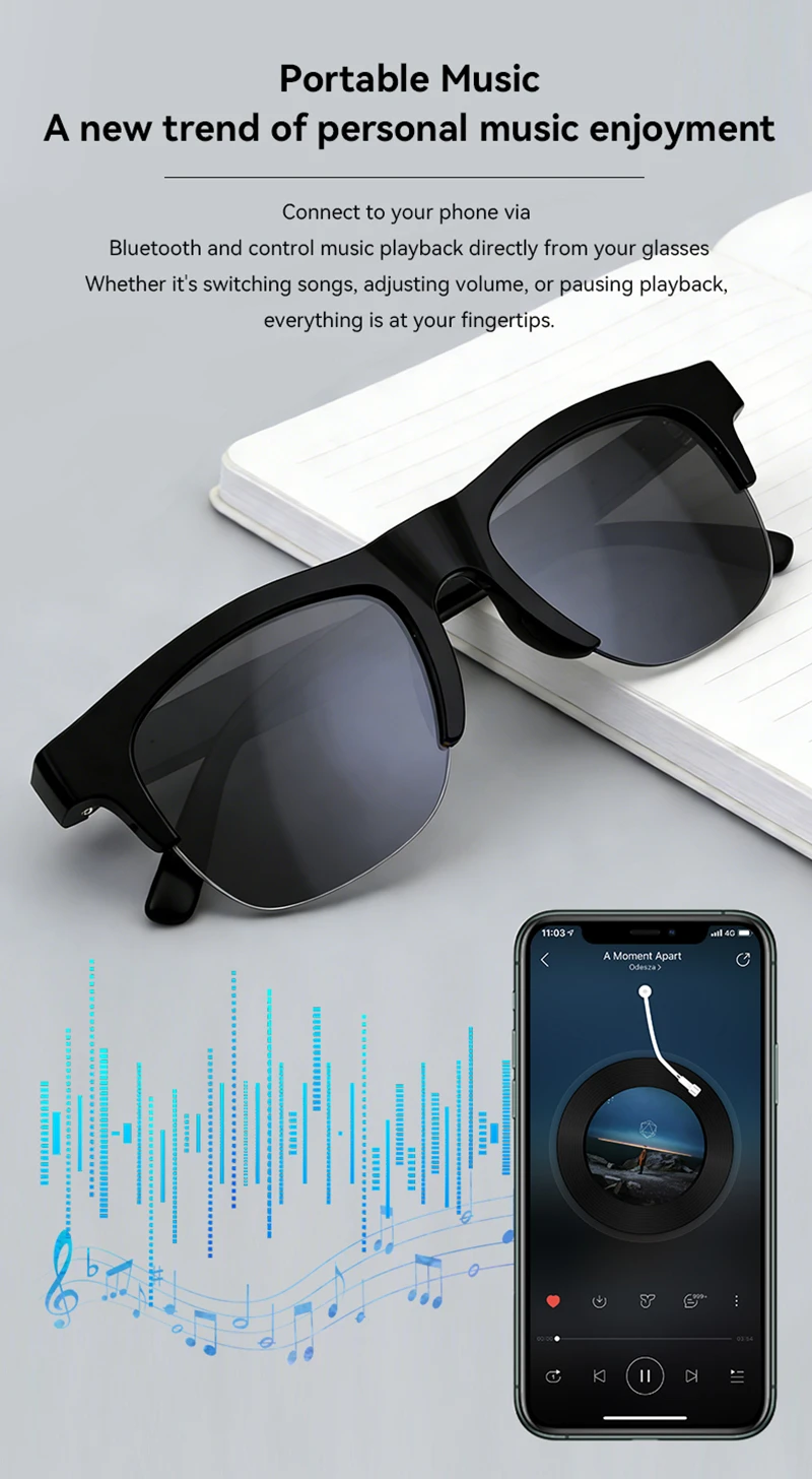 Smart Glasses Bluetooth Call Music Control Wireless Fashion Earbuds Gift Earbuds for Men Women Outdoor Sports Sunglasses