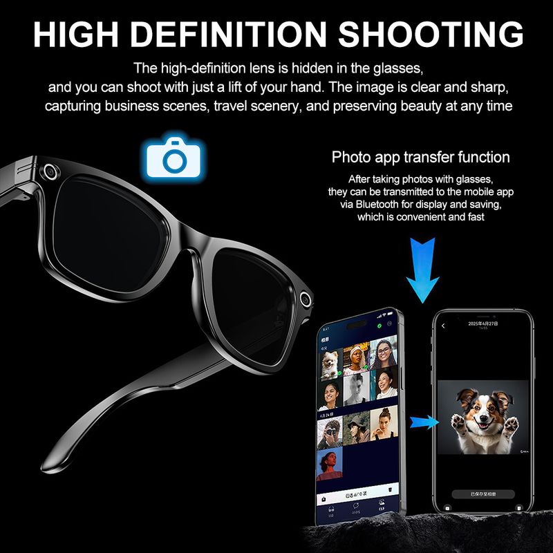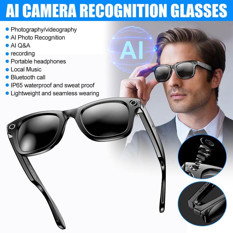 Smart Glasses Camera Video Recording Bluetooth Call Music Player AI Translator Photo Recognition Q&A IP65 Waterproof Glasses