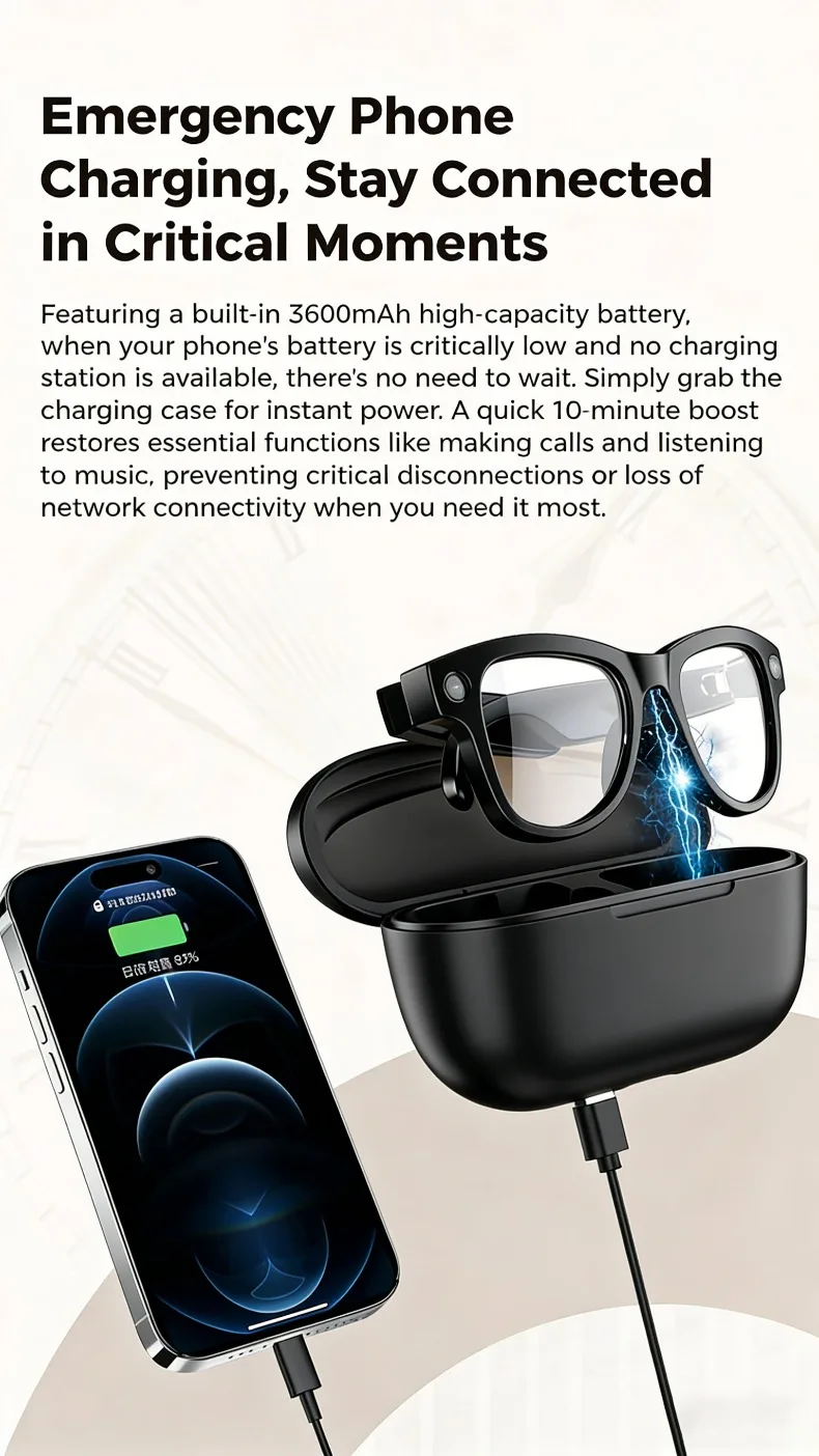 M02 AI Smart Glasses 8MP Camera Video Recording 100+Languages Translation Sunglasses Bluetooth Call Music Play with Charging Box