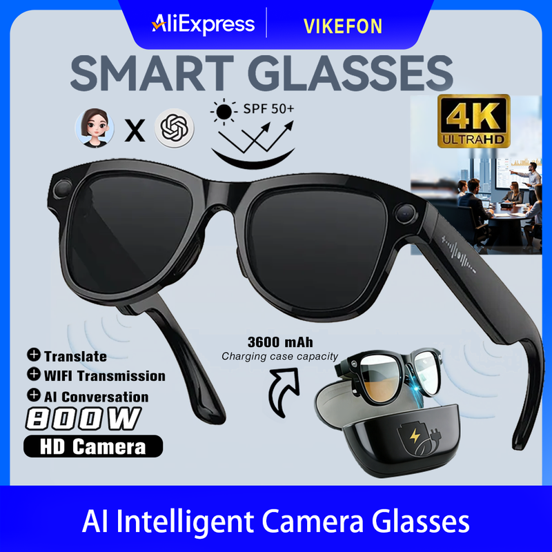M02 AI Smart Glasses 8MP Camera Video Recording 100+Languages Translation Sunglasses Bluetooth Call Music Play with Charging Box
