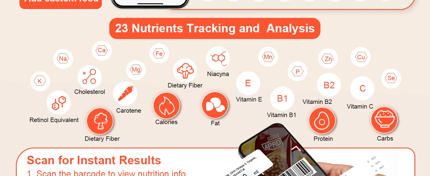 Designed for meal prep and calorie control, our kitchen scales deeply analyzes 23 core nutrients. Our food scale with the app to track nutrition continuously, optimize eating habits and improve health management efficiency.