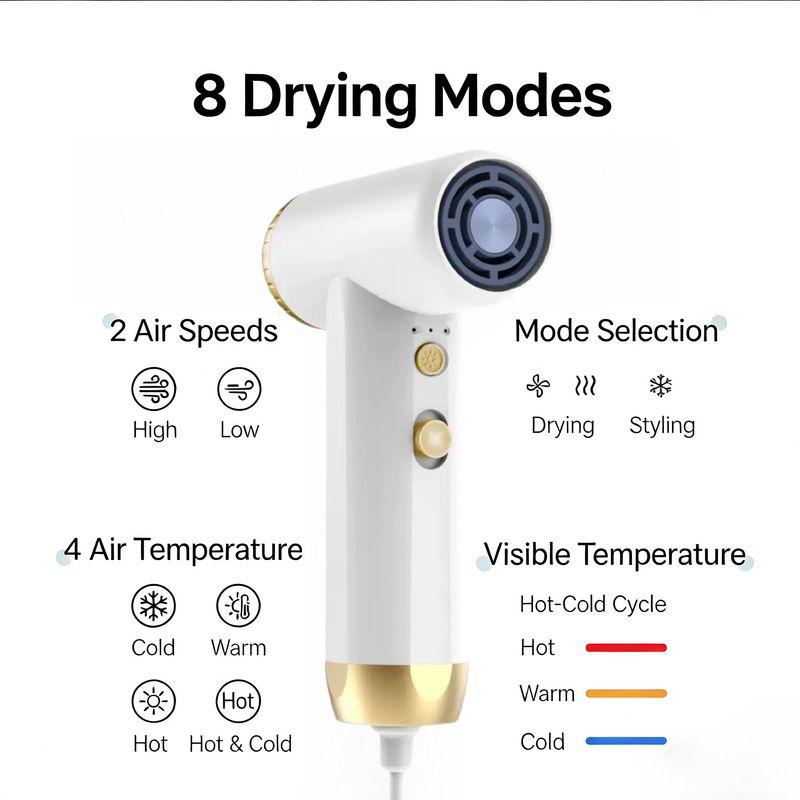 Experience quick hair drying! Use our smart mini high-speed hair dryer, which is perfect for busy mornings.