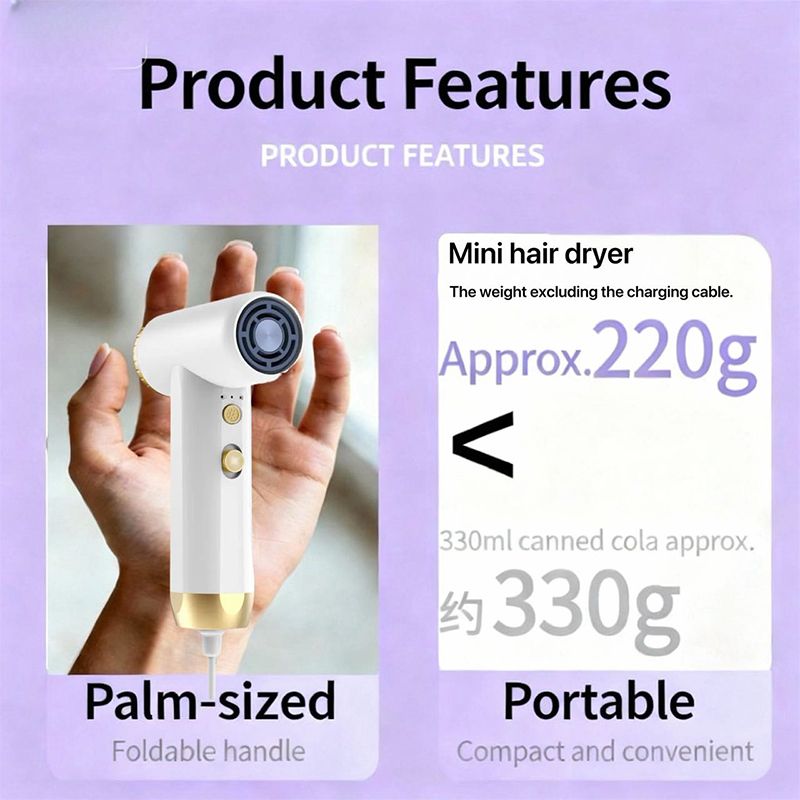 Experience quick hair drying! Use our smart mini high-speed hair dryer, which is perfect for busy mornings.