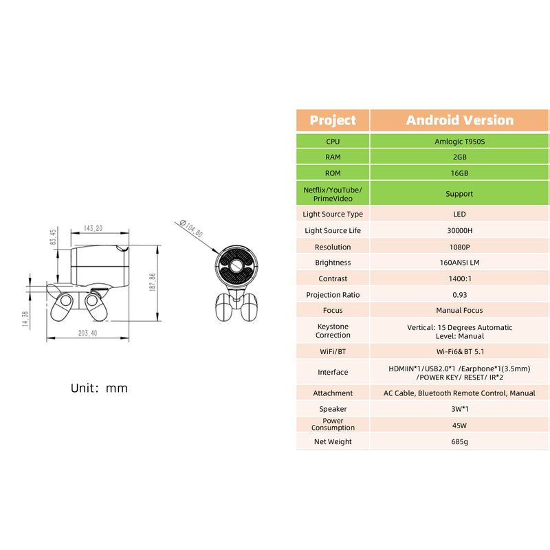 Crisp 1080P projection (Supports 4K input) with 20% brighter lens vs competitors. Movie nights without eyestrain! 🎬
