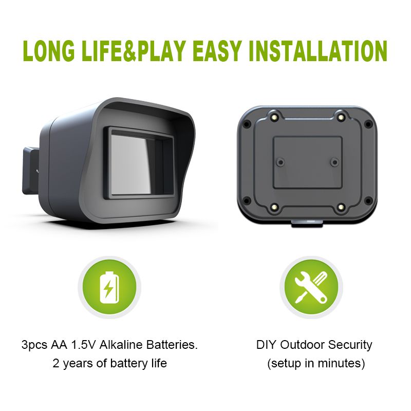 [Guard From Outside] - Alert you and scare off the strangers before they break in your property even you are away. Ideal for front door,garage,yard,porch,shed,windows and anywhere of the outdoor areas you want to monitor. Keep you and your family safer.