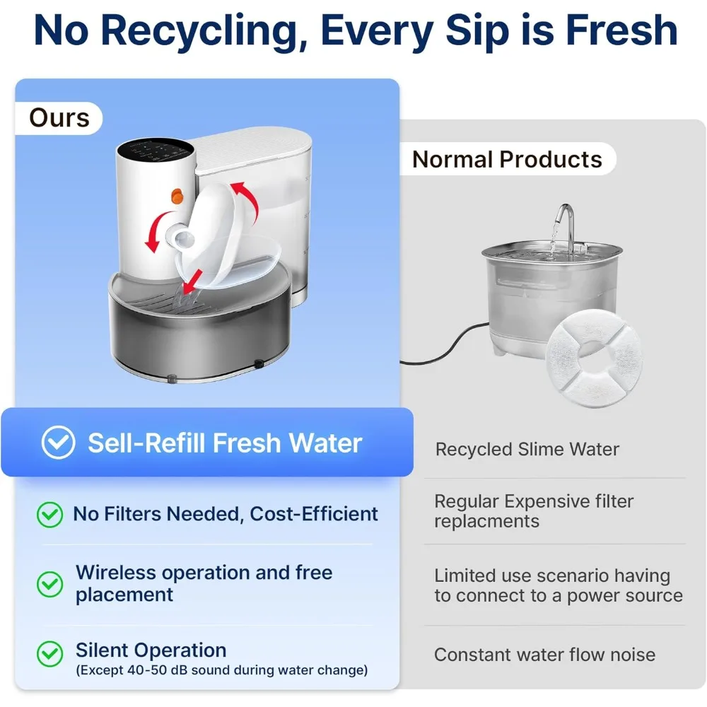 Product Name: Potaroma Smart Wireless Pet Water Fountain - Filter-Free 3.5L Large Capacity Rechargeable Automatic Water Dispenser for Cats & Small Dogs with Wastewater Separation for Constantly Fresh Water Product Description: